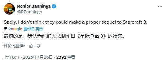 在官推評論區裏,多數玩家對如今的暴雪和《星際爭霸》IP都持悲觀態度。海外玩家普遍認爲,現在的暴雪已經“江郎才盡”,再也無法復刻從前的輝煌,製作一部令人滿意的《星際爭霸3》。