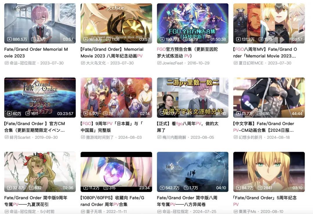 FGO的每年出的PV,播放量也是動不動幾百萬。