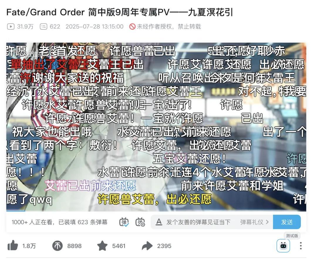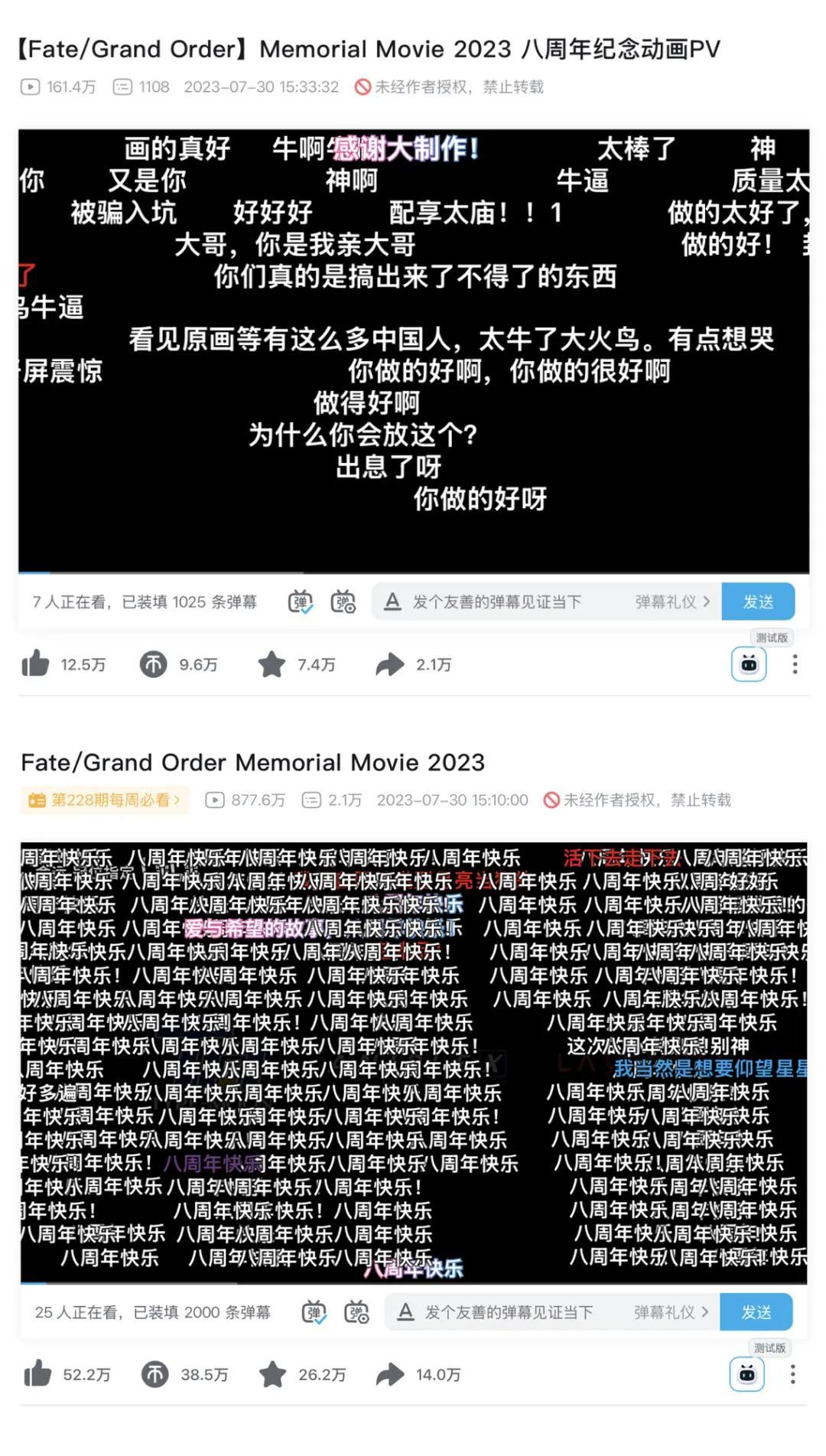 過去,國內玩家對週年PV的期待往往來自日服。B站充斥着玩家自發搬運的日服週年PV視頻,播放量與彈幕數量總會在週年前後迎來高峯。