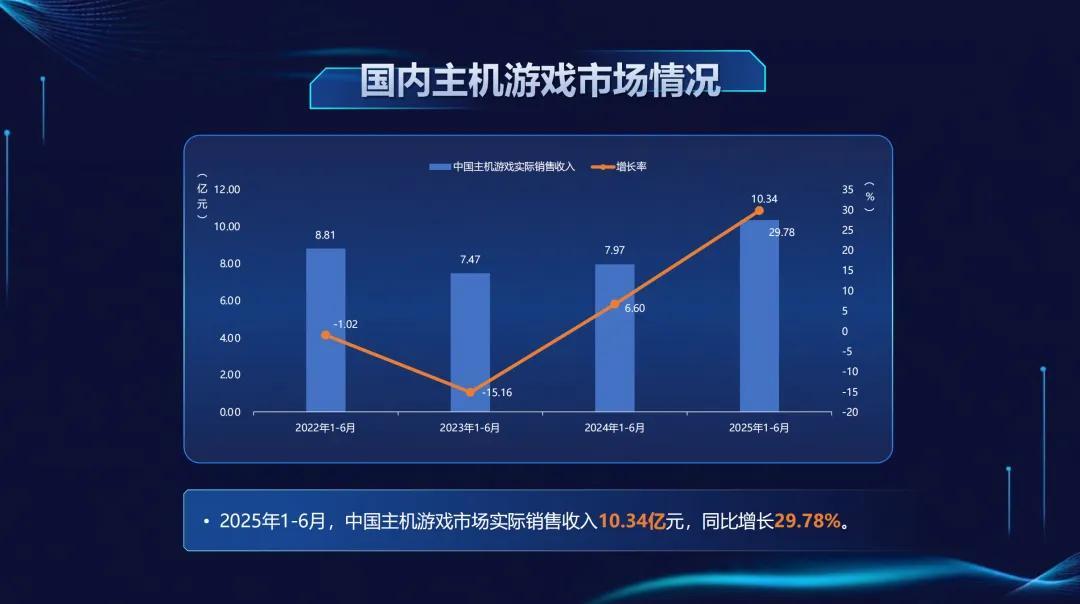 中國主機遊戲市場實際銷售收入10.34億元,同比增長29.78%。