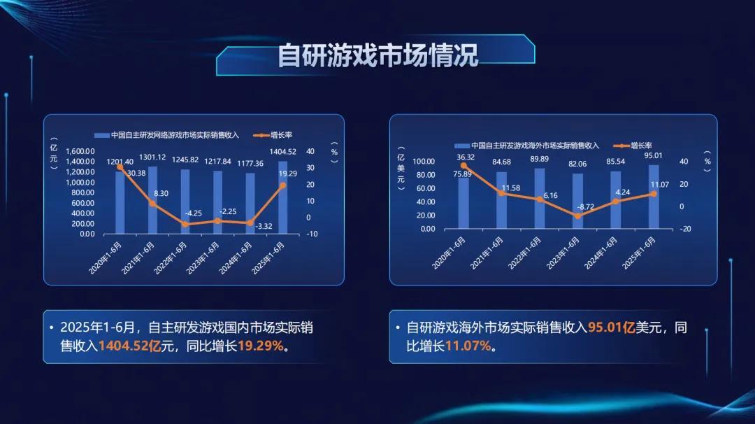 其中,中國國自主研發遊戲國內市場實銷收入1404.52億元,同比增長19.29%;中國自研產品海外實銷收入95.01億美元,同比增長11.07%。