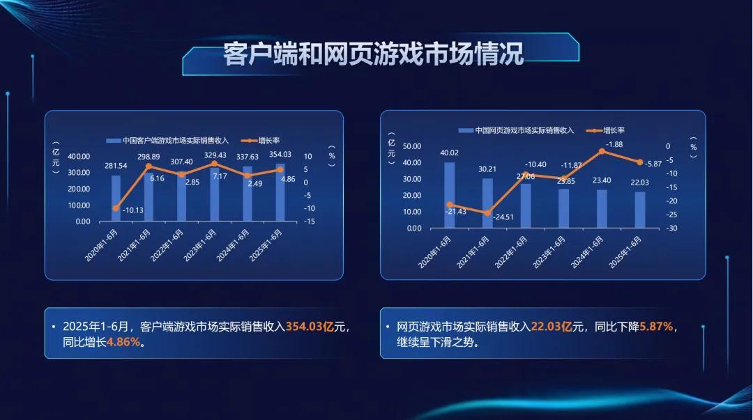 近日,遊戲出版工作委員會和遊戲產業研究專家委員會公佈了《2025年1-6月中國遊戲產業報告》,報告的重點內容如下: