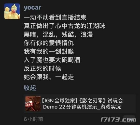 還海外平臺上,《影之刃零》的這段實機演示也收到了諸多讚譽,老外們紛紛表示被其中的武俠動作和氛圍所折服。