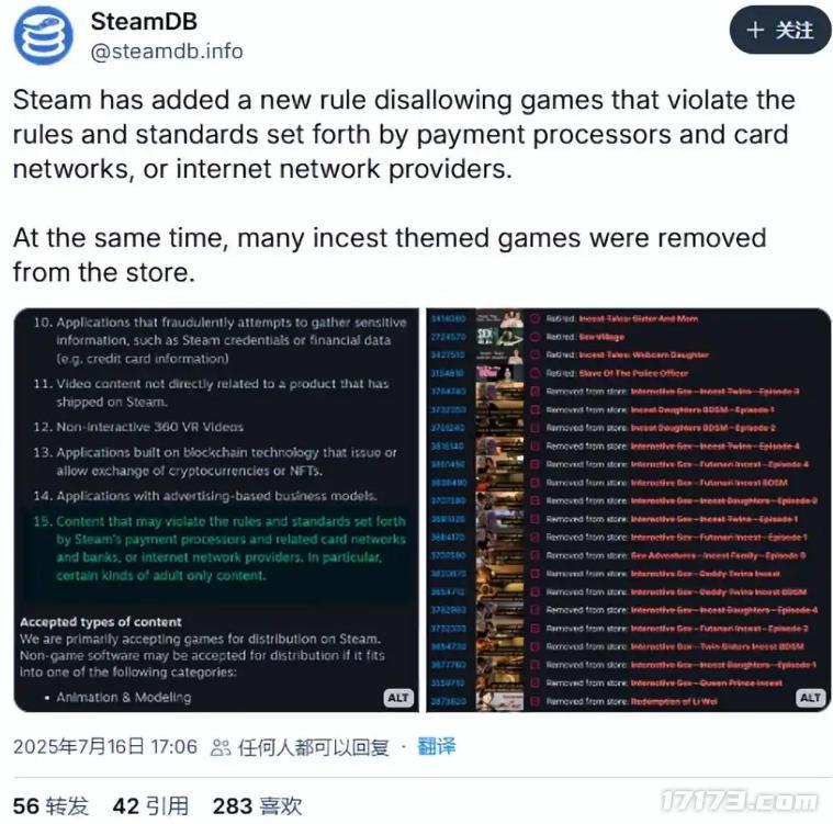 7月底,Steam悄悄下架了不少極端成ren題材的遊戲,不少數據機構猜測這都是與一項新增的支付條款相關。