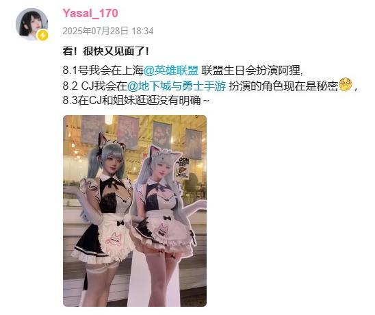 令人期待的是,之前在BW上爆火的知名韓國Coser Yasal 也宣佈參加此次ChinaJoy展會,並會Cos多位角色,更加讓人興奮的是其公司RZCOS的其他Coser也將一同參展,可以說縱享異國風情。