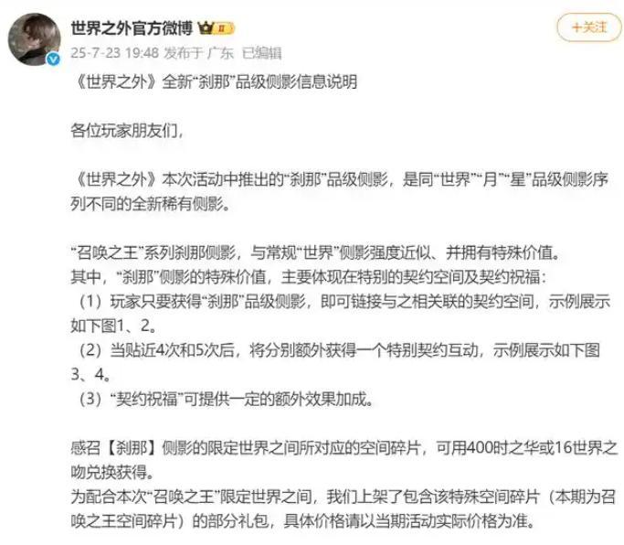 近日,網易旗下女性向手遊《世界之外》因商業化策略調整引發大規模玩家抗議。7月23日,遊戲未提前公告便將新卡池“召喚之王”的抽卡價格從300時之華/抽突增至400時之華/抽,且高價池可能產出原價300時之華的常駐卡,被指“質價不符”。
