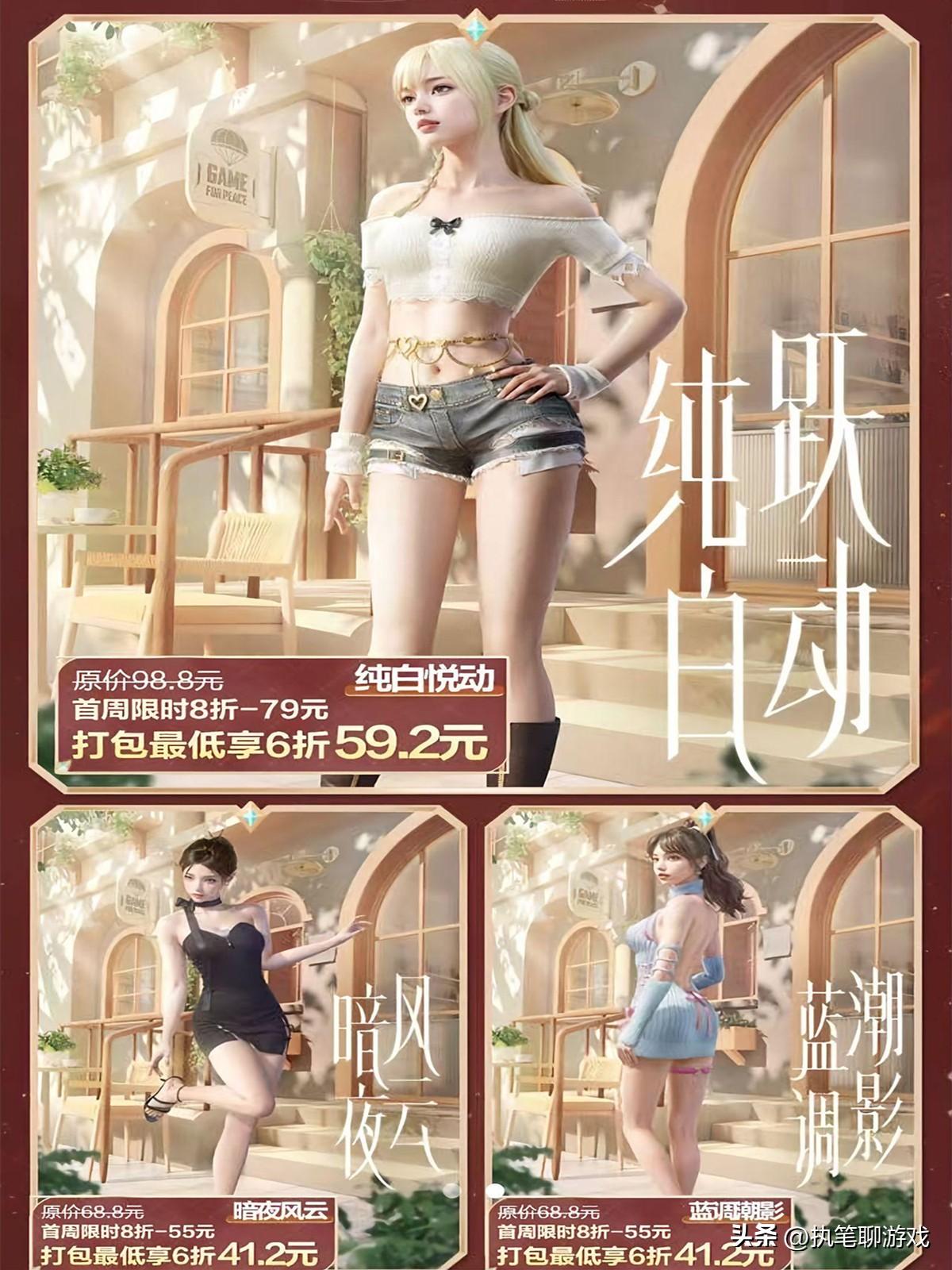 在此次“剋剋莉絲”的遊戲外專場裏,光子還正式官宣:來自和平集市2月份上新的經典套裝進行返場,它們就是有着“和平小媽裙”綽號的純白悅動、藍調潮影、暗夜風雲。