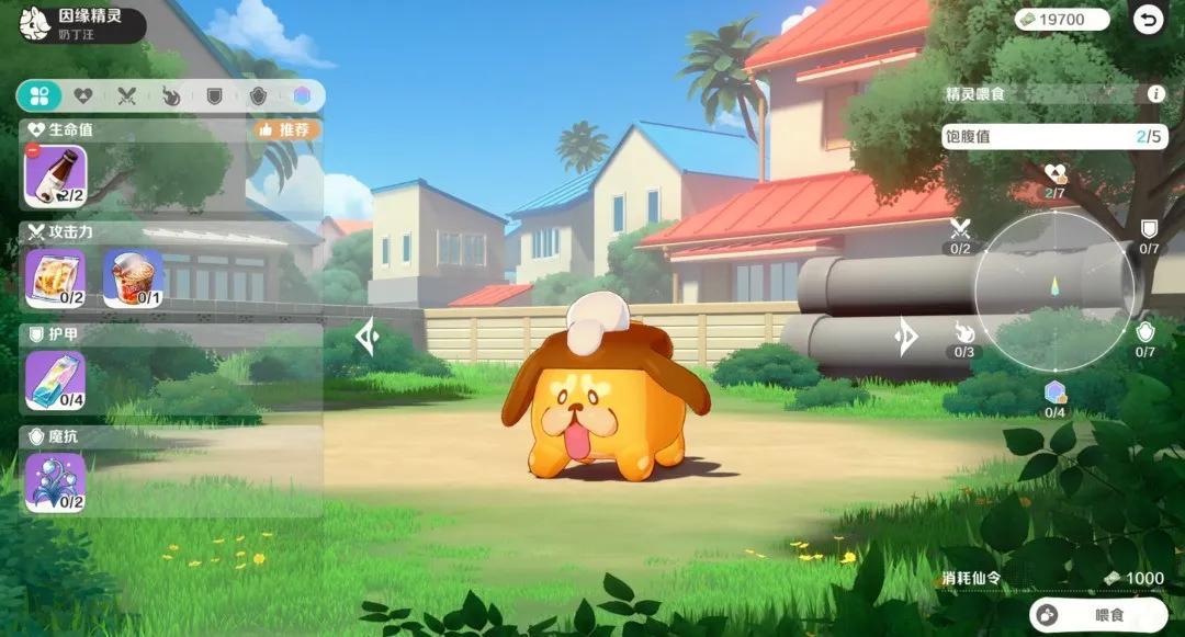 至少在這次測試中,精靈的養成做得很淺,精靈等級自動與角色等級對齊(也就是世界等級),唯一需要玩家操作的就是一個餵食系統:喂對應食物提升對應的攻防屬性。