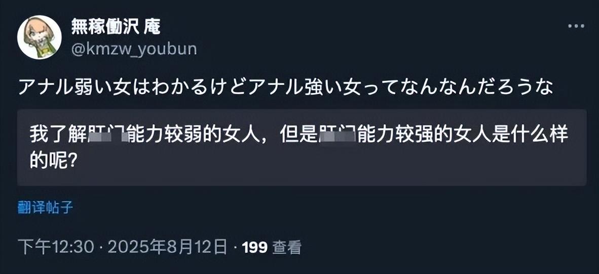 如果你在X平臺或日本的匿名論壇搜索「アナル弱そう」(看起來〇〇很弱的樣子),絕對會讓你大開眼界!