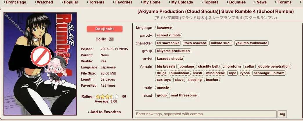 最早可明確追溯的記錄,出現在2007年一部《校園迷糊大王》的R-18同人誌中。