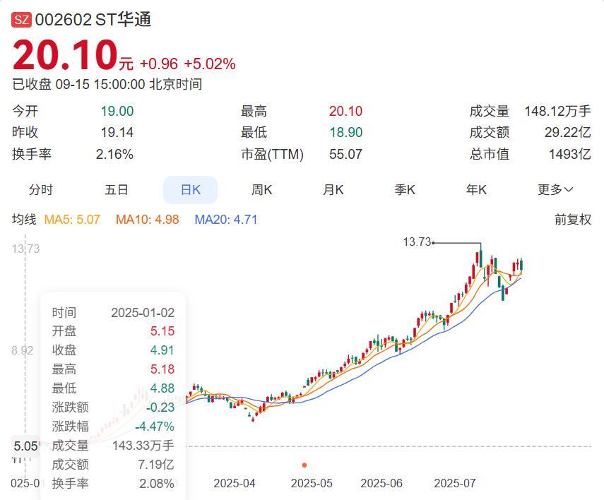 4月底,世紀華通公佈2024年財報,全年營收226.2億元,同比增長70.27%,淨利潤12.13億元,同比增長131.51%,其中游戲業務收入209.66億元,同比增長85.94%。而從股價曲線我們也能看出,5月份後世紀華通股價猶如坐上直升飛機一般猛漲,而且這還是戴着ST帽子每日5%的限制下達成的。