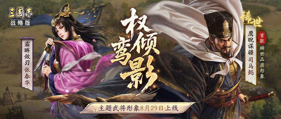 靈犀互娛《三國志·戰略版》8月29日推出“權傾鸞影”主題武將形象,上線“鷹睨謀疆·司馬懿”和“霜眸斂刃·張春華”,次日在iOS暢銷榜上升至第13位。