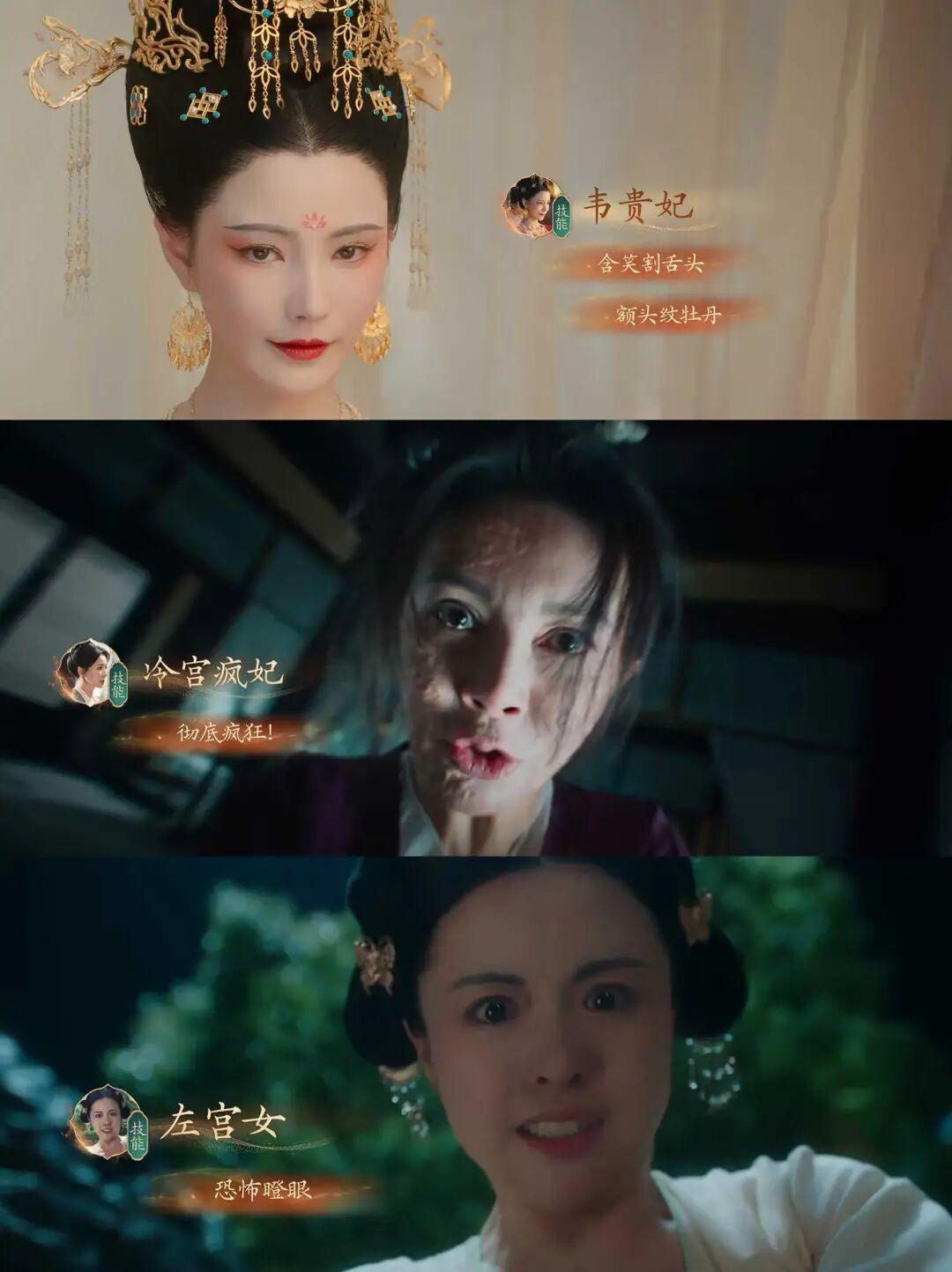 在劇本階段時,項目組就對這個角色是怎樣的有一個模糊的概念。在挑選演員過程中,看到演員們的資料和視頻時,遵循第一感覺來選擇,不少角色都是條件反射般的認定“就是他/她了”。在目前公佈的PV中,我們看到了妖嬈萬千的韋貴妃、表情猙獰的冷宮瘋妃、狗急跳牆的宮女,以及性格迥異的三位皇子等一衆棱角分明的角色。