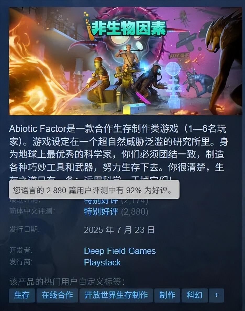今天推薦一款拉屎也要玩小遊戲才能拉出來的有趣遊戲,叫《非生物因素》,是7月份發售正式版的,好評率95%。別看遊戲大小不到10個g,但遊戲性很強,內容量也很多,屬於當下最值得玩的生存建造類聯機遊戲之一。