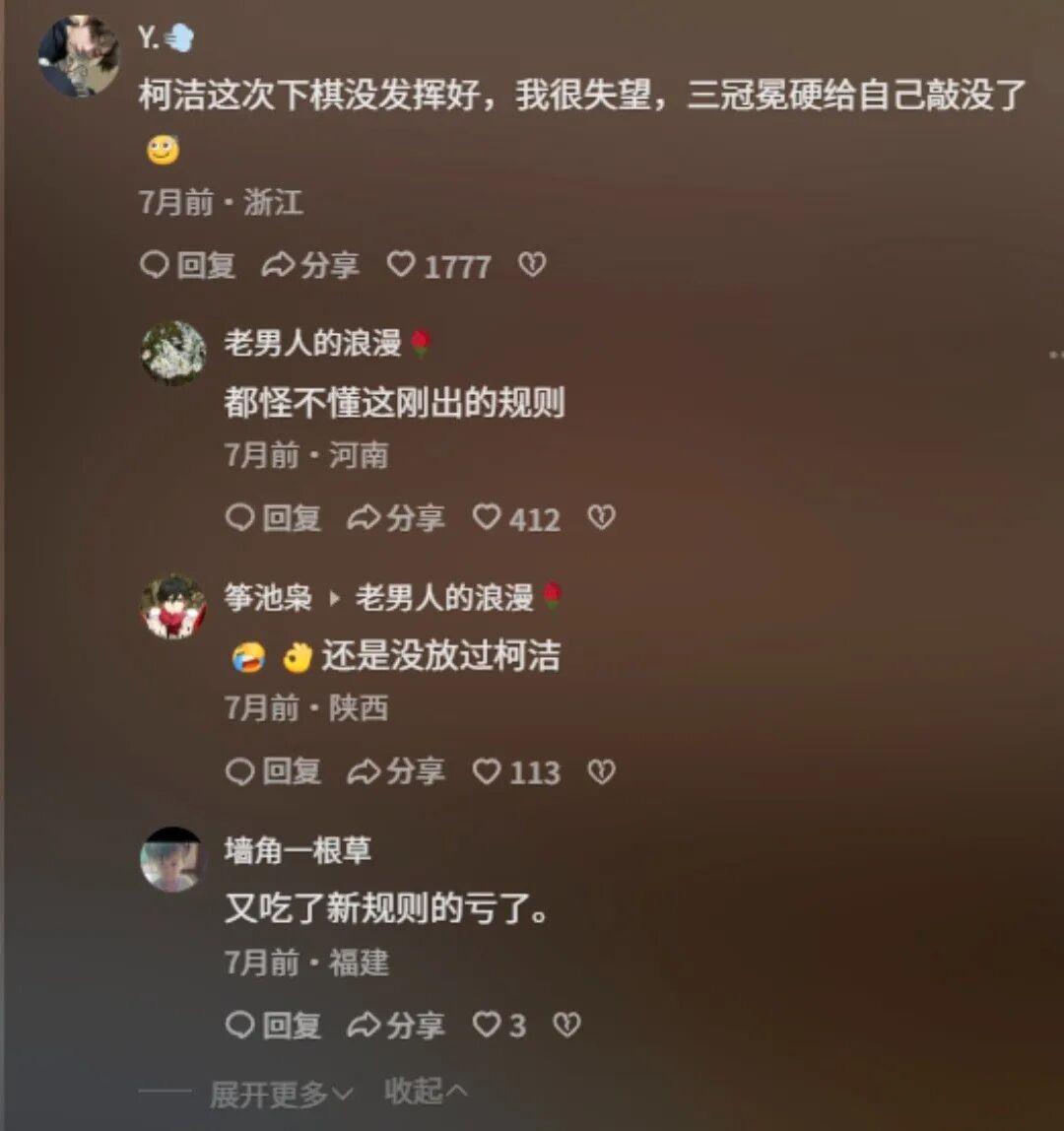 事實上,而且何止內娛,這股“鏟風”早就吹遍了各個圈子。就連圍棋世界冠軍柯潔也未能“倖免”。今年一月LG杯決賽,因韓方判罰爭議,他憤而退賽,直播回應時數度哽咽,情緒低落。