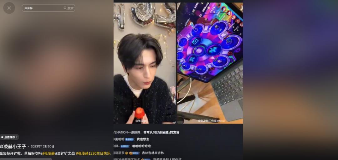 再比如演員張凌赫,直播有事沒事打個鏟,甚至過生日還拉着粉絲開水友賽,