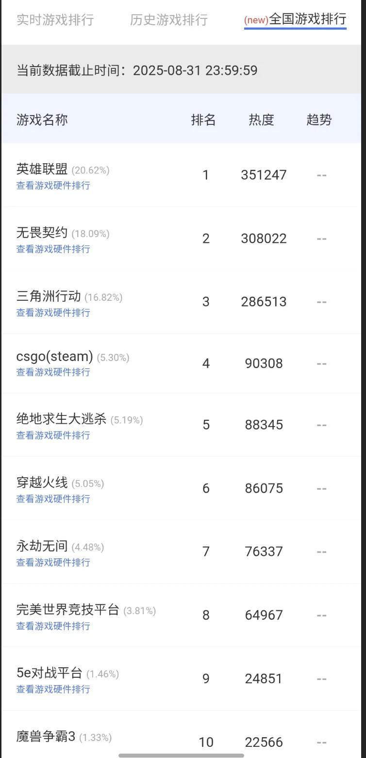 暑期網吧熱度榜單公佈 PC射擊市場勢能強勁