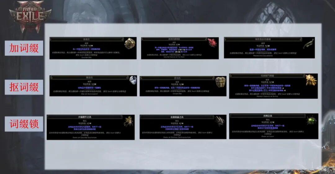 但具體到POE2中,當下的做裝系統的門檻被壓到了非常低。這個版本新加入的道具(完美精髓、深淵通貨等),讓玩家做裝時,能一定程度上定向移除、增加關鍵的詞綴。