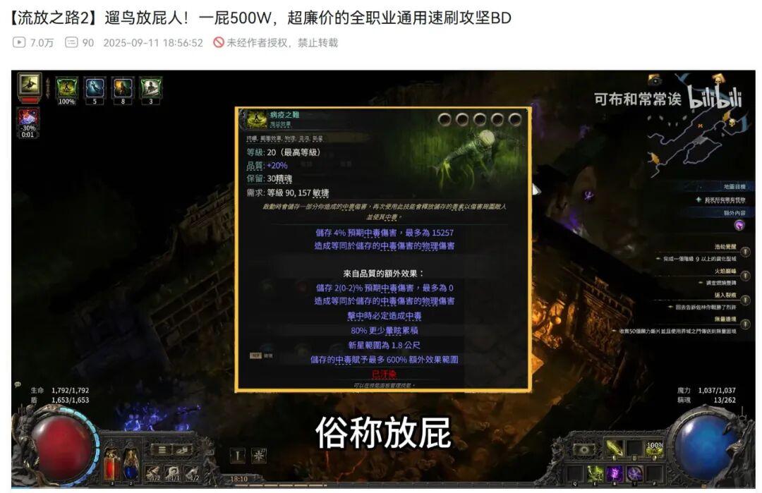 在國內的POE2社區,還有個“王朝”梗。指的是,論壇B站等社區的博主,在分享自己的BD時,經常會在標題、封面裏套公式,用“XXX真王朝了”表現某種玩法是版本答案,已經無敵了。