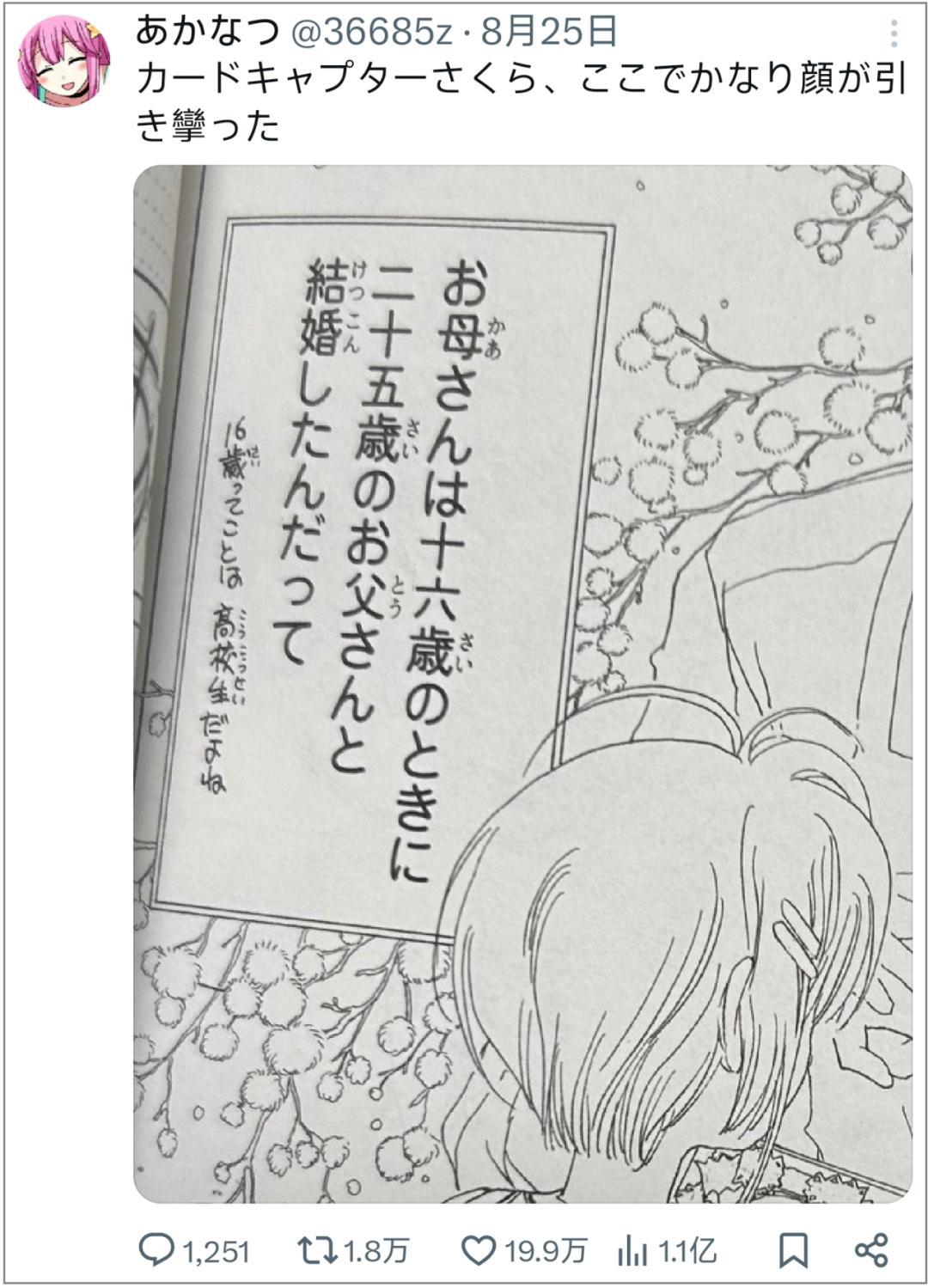 起因是該片劇場版在日本影院重映,裏面一些關於愛情的描寫重新受到關注。其中“小櫻父母結婚時分別爲25歲老師與16歲學生”的設定,因爲一條吐槽向的推文,成了日本X平臺的爆炸性話題。