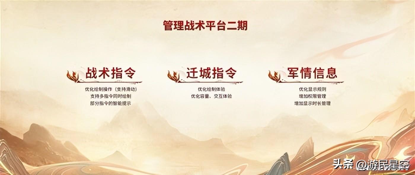 本次的二度升級,增加了“戰術指令”“遷城指令”“軍情信息”多個內容的細節優化,諸如自動鋪路、預約攻城等,減少了流程上細枝末節的操作時間,讓玩家們能將精力更專注於自由沙盤的謀略上去。