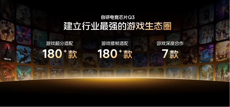 自研電競芯片 Q3 現已適配 180+ 款 PC 級遊戲超分、180+ 款 PC 級遊戲超幀和 7 款頭部遊戲超分超幀,並攜手 10大 Top 級遊戲邁入真 2K 視效時代、4 大頂流 FPS 遊戲帶來領先槍戰體驗,併成功落地全場景自研光線追蹤技術。iQOO,是行業中迄今爲止遊戲內置超分超幀數量上更爲領先的廠商。