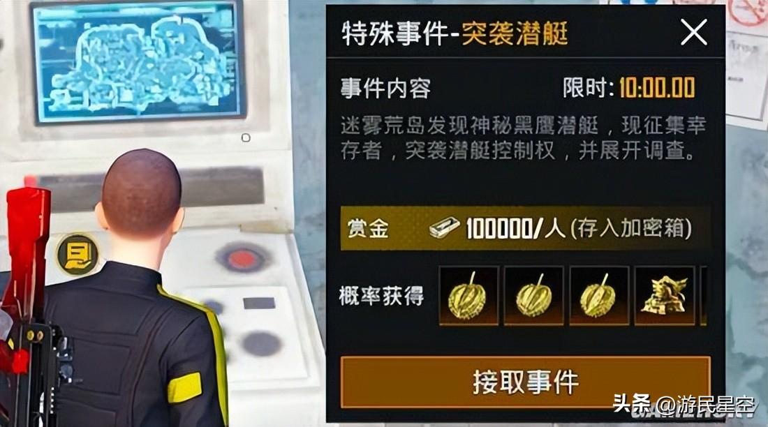 比如新賽季的特殊限時模式——進階迷霧荒島模式新增的突襲潛艇玩法。其在原有迷霧荒島的玩法上新增了一個特殊事件,需要玩家完成一系列任務召喚神祕潛艇,探索潛艇並擊敗全新BOSS“黑鷹”雷鯨上校。該模式更像是在原有“搜打撤”玩法的基礎上,增添了類似角色扮演遊戲任務的元素,帶來與以往搜完打、打完撤的固定套路全然不同的體驗。