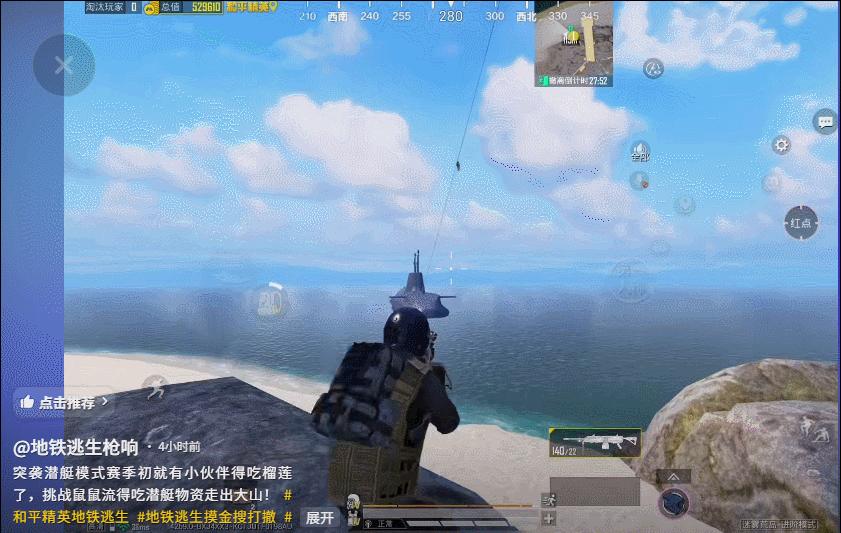 而在這方面,你可以永遠相信《和平精英》玩家的整活能力,比如有歐皇跑刀鼠鼠在潛艇的混戰中渾水摸魚摸到飽滿的報恩黃金榴蓮,美美撤離;