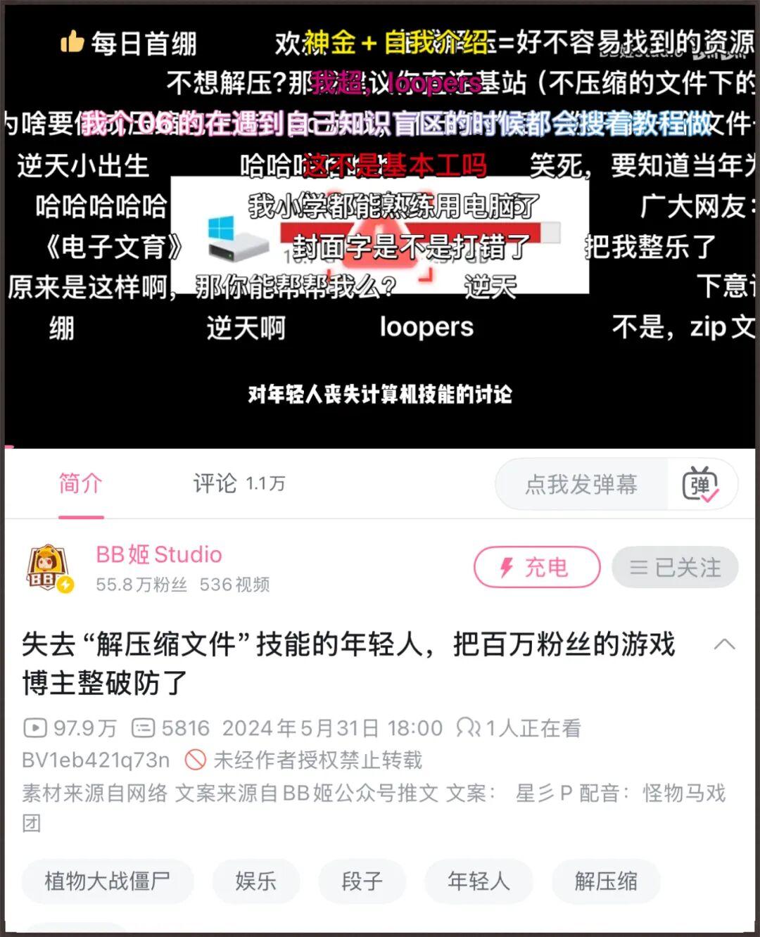 聯想到BB姬寫過“小登不懂解壓縮,結果鬧出笑話”的事情,包括前陣子很多小孩不會裝Steam,不知道怎麼下載《戰地6》,或許有這個原因在裏面吧。