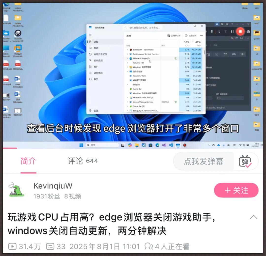 (前陣子鬧得沸沸揚揚,導致遊戲卡頓的edge遊戲助手)