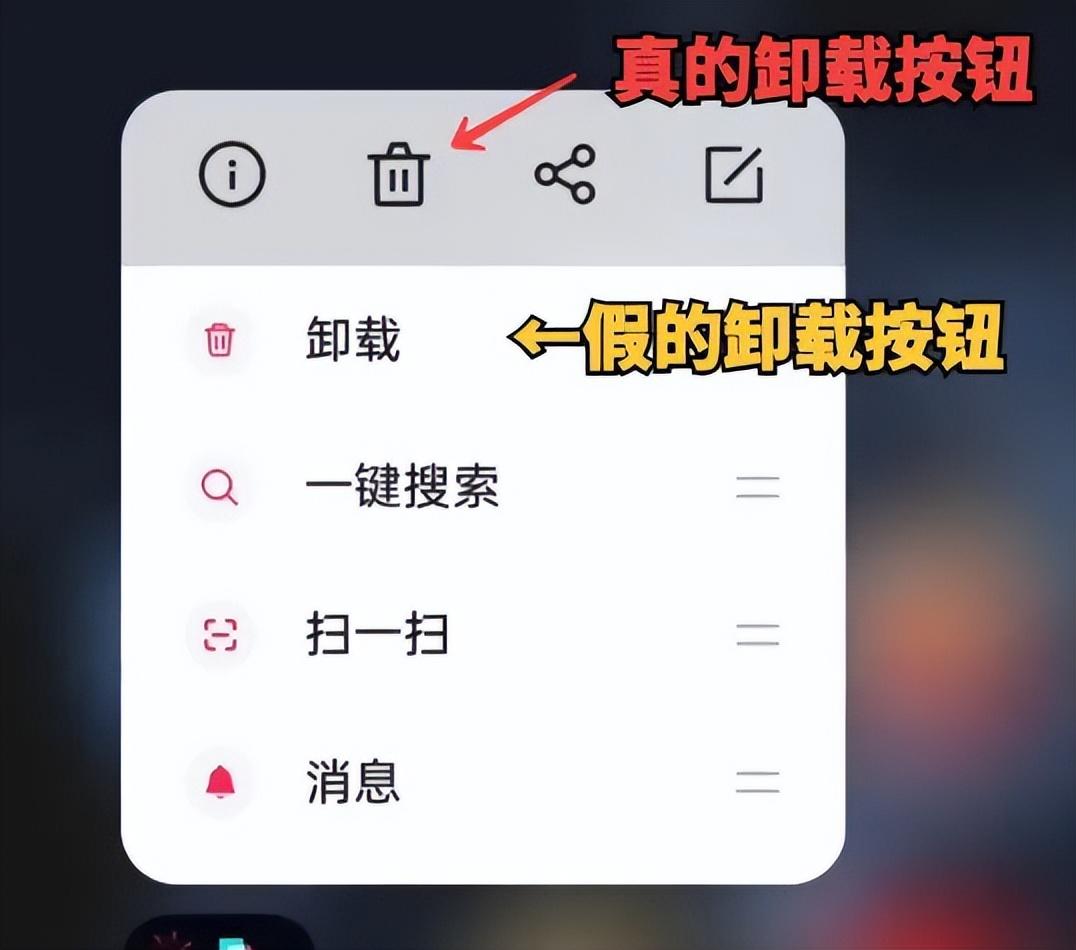 放以前,不少安卓的牛皮蘚APP也有過“假卸載”的問題,長按圖標會彈出虛假的卸載菜單,而真正的卸載按鈕卻在上方。