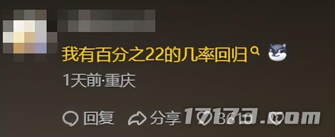 目前,在DNF官方求玩家迴歸的視頻下方,點贊最多的熱評是:“我有百分之22的幾率迴歸”。