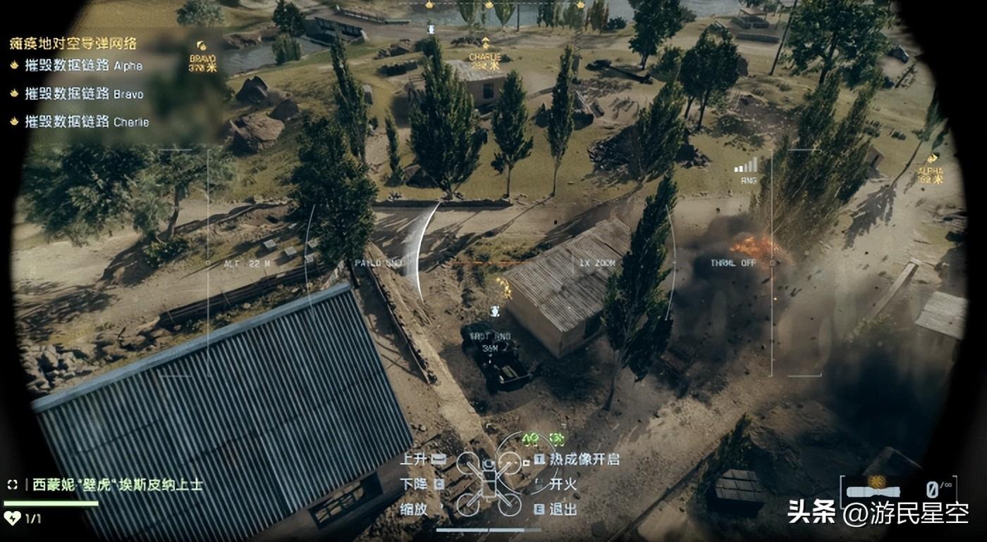 話雖如此,但這關確實也有一些亮眼的部分,像是遙控炸彈投彈無人機、單兵制導迫擊炮等裝備的亮相,就讓人過了把多人對戰中過不到的癮,至於偵查、駕駛、狙擊這些可供玩家們自行選擇的傳統項目,到也能給略顯枯燥的清點環節帶來些有限的樂趣,讓玩家們在感覺到重複感之前便能結束這段故事。
