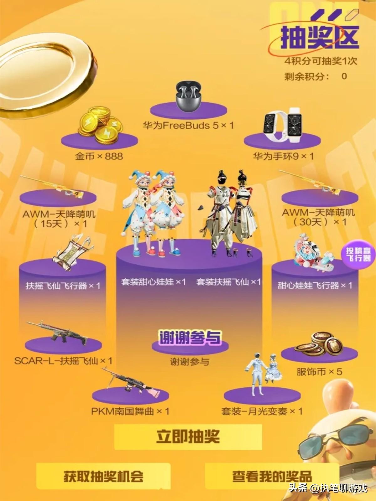 聊完了關於新紅裝以及國慶新套裝的話題後,咱們來說一下最近的各種抽獎吧~由於PEL與“四排節”的原因,《和平精英》不僅在遊戲裏上架了一系列的福利獎勵,遊戲外也是開啓了各種抽獎玩法。