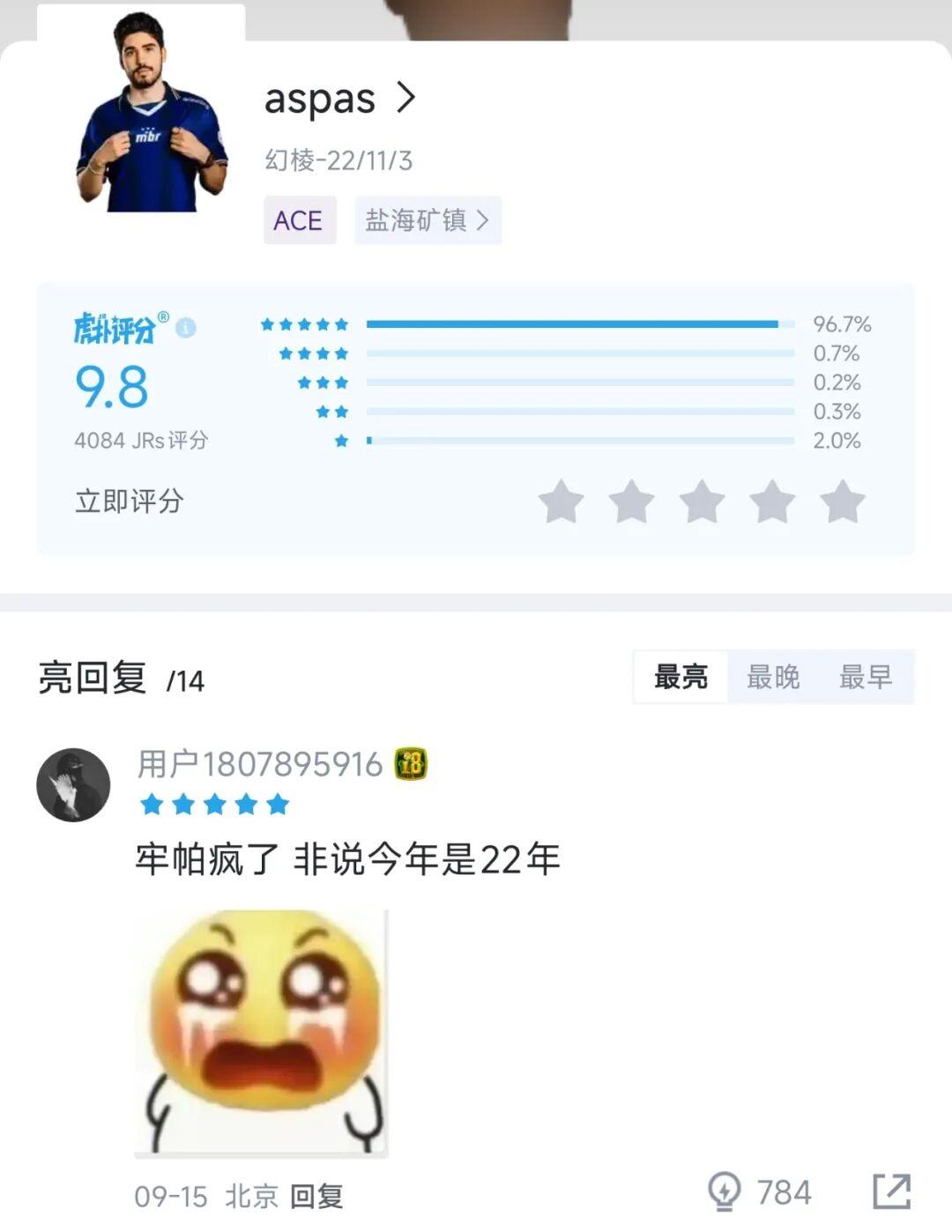 在他打出驚天操作,尤其是那次近乎完美的ACE時,中文流的彈幕並沒有被惋惜或埋怨刷屏,反而飄過了無數“Aspas!!!”和“牢帕回來了”。而就在昨天凌晨,Aspas帶領了MIBR打敗RRQ闖進八強,你真的能看到很多,中國玩家們對他溢於言表的真心讚美。