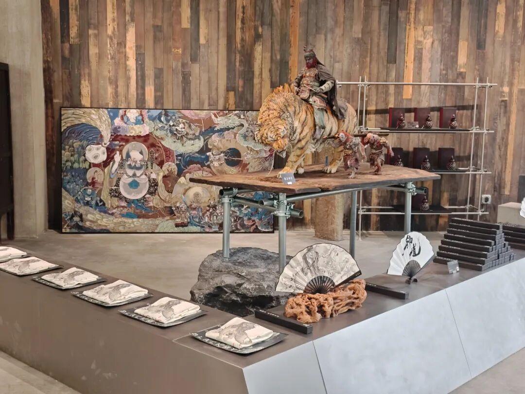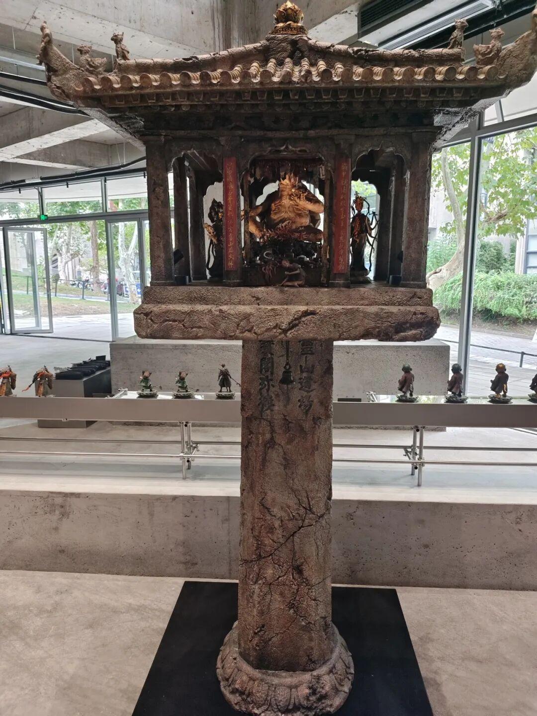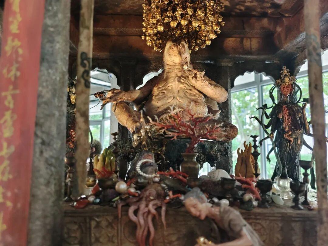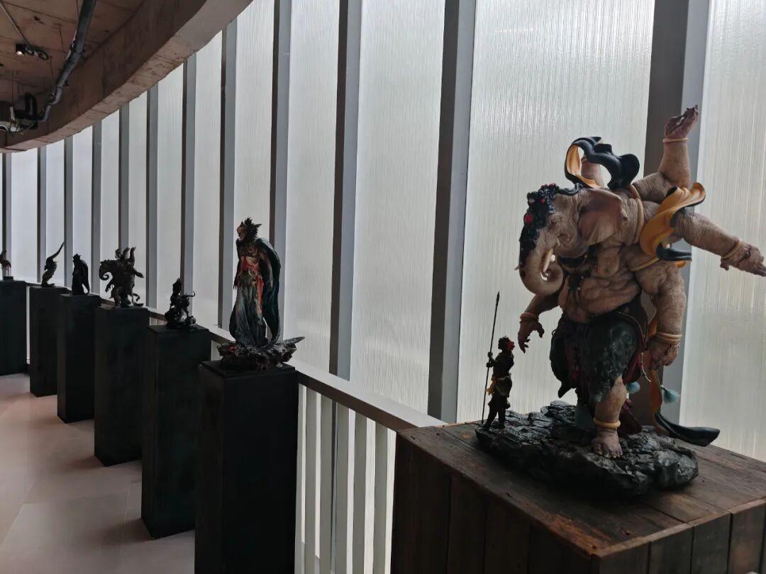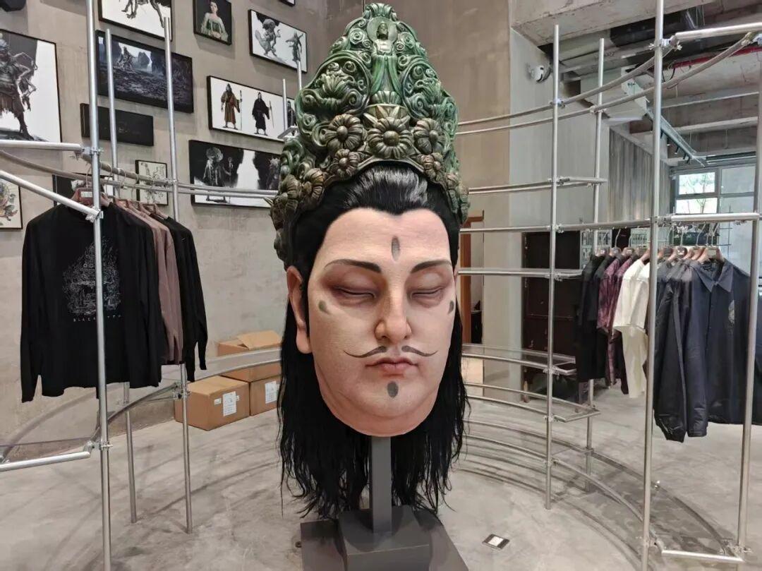 此前在黑神話&中國美術學院藝術展上的一些吸睛展品,都被搬了過來。比如說靈吉菩薩的巨型頭像。
