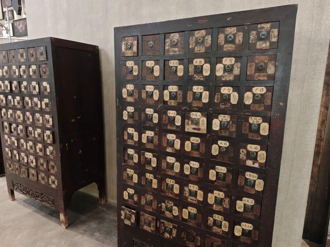 而商品的陳列和貨架貨櫃,則向展品展陳的標準和邏輯靠了一步,做了很多特別的設計。如徽章展櫃的原型就是民間收藏的清朝中藥藥櫃。