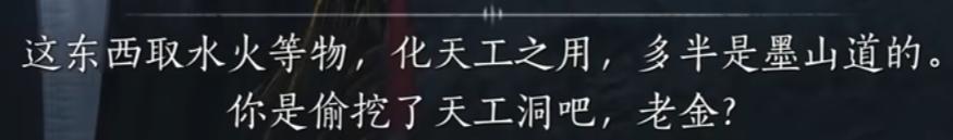 玩家在清河將軍祠識破老金(NPC)訛人的騙局,逼老金給出兼鳴手套,之後纔可以採集火燼、毒物、水蘊等道具。