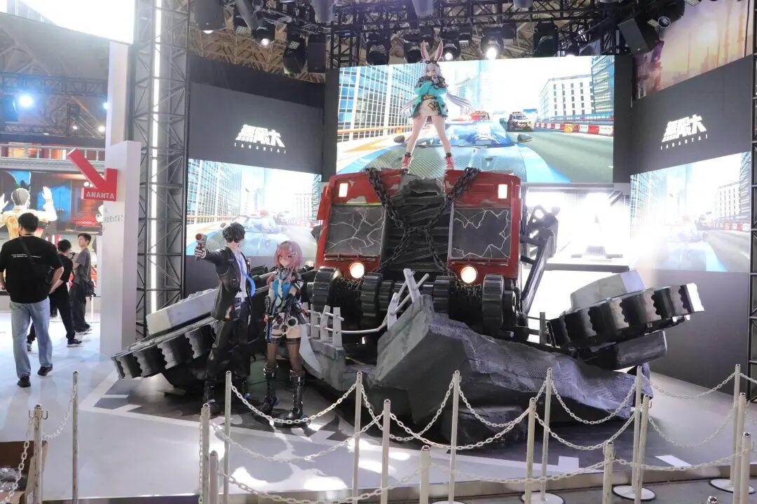而到了今天的展會現場,這份熱度更是被直接引爆——這款遊戲可能是TGS首日最大的贏家。現場,《無限大》的展臺佈設相當搶眼——角色造像踩在車頂,姿態張揚,配合多位知名COSER助陣,吸引了大量玩家駐足試玩。一些KOL體驗過後感嘆:真恐怖,中國遊戲要超車了。