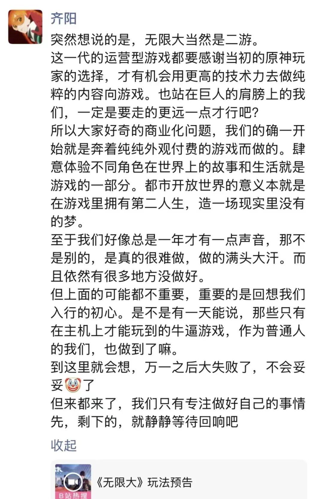 好在如今遊戲距離上線還有一段時日,也許下一個節點,他們還會釋放出更多內容,展現自己更深刻的思考,更絲絲入扣的解法。到了那時,對於《無限大》的未來,我們應該會有更準確的判斷。