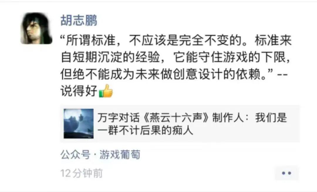 雷火事業羣負責人胡志鵬 之前也在朋友圈討論過標準的問題