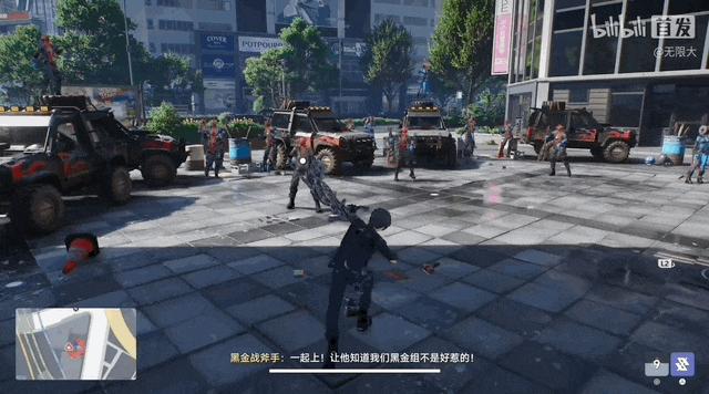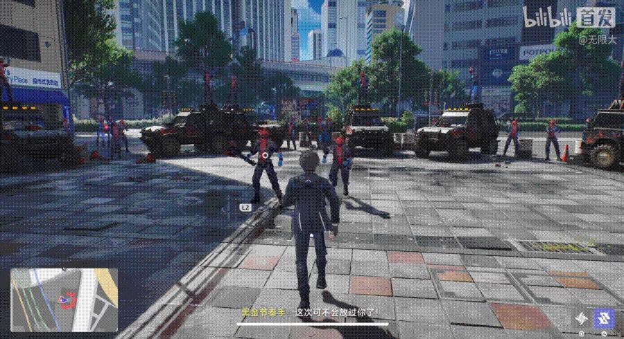 比如在戰鬥過程中,遊戲並沒有把對話和戰鬥割裂開來,而是在激戰間隙自然穿插臺詞互動,讓整個過程完全不顯枯燥。敵人追擊的理由竟是“要給老大辦演唱會”(真不理解);飆車戰中角色會吐槽“追這麼緊,有加班費嗎?”;主角用「觸手」搶到武器後,隊友還會調侃“還有這一手?”……幽默的吐槽臺詞,加上略顯誇張的演出,讓緊張刺激的追逐戰,多了一層歡樂的基調。