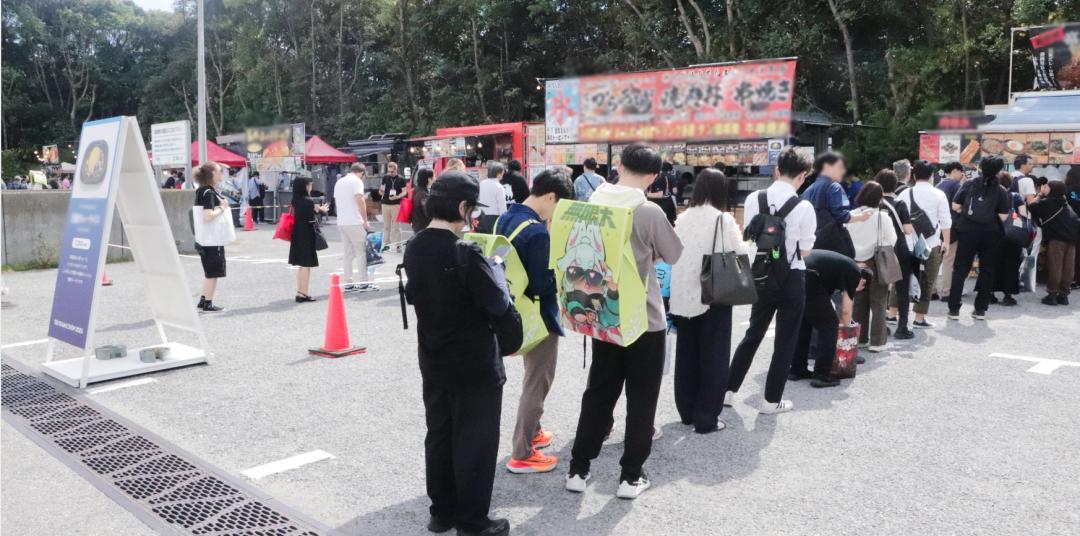 雖然首日是面向業內人士的商務日,但現場的人氣絲毫不減。開館前一個小時,會場外早已排起四條長長的隊伍,從天橋一頭到了另一頭,又順着橋面延伸到下方空地,彎彎曲曲望不到頭。