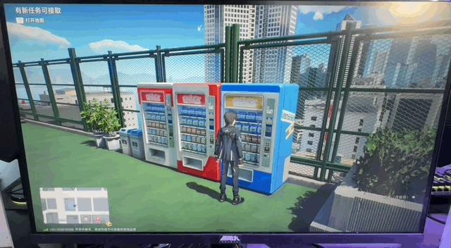 嘗試過籃球玩法之後,我又看到了旁邊的自動售貨機,我開玩笑地說,這時候就應該來瓶飲料——沒想到,遊戲居然也給售貨機安排了交互動作,我還真就實打實地喝到了飲料。