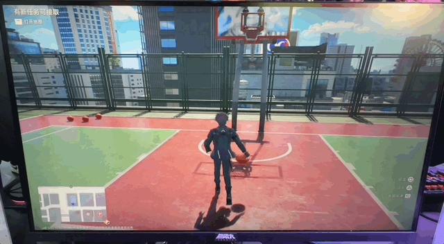 這真不是誇張。在試玩中,我一開始僅僅是想體驗角色飛檐走壁的玩法,卻在一棟樓的樓頂看到了一座籃球場。出於好奇心,我翻了進去,裏面剛好有一顆籃球。