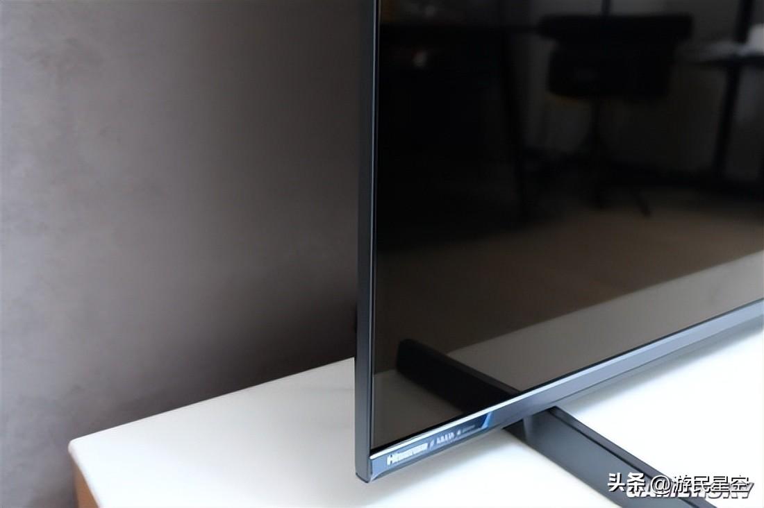 本次測試的爲一臺85英寸的海信E7Q,整個機身的設計相當簡約,沒有花裏胡哨的修飾,黑色爲主的顏色基調,配合金屬拉絲的邊框,完美融入各種風格的客廳。不管是冷色調爲主的北歐風,還是色彩明豔的現代風格,都能適配,顏值這一塊拿捏得死死的。