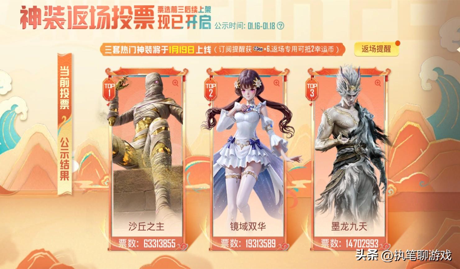 首先我們來回顧一下第一次返場,當初是採用人氣票選的方式,在1.19正式返場,並非是很多玩家記憶中的國慶小長假,所以目前並沒有任何準確的消息確認返場,只是AI智能的回答罷了。
