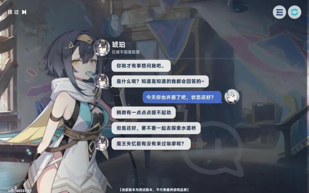 遊戲還根據這一點,立體化地佈置了不同角色在不同內容中的刻畫方式。比如主角團之一的「琥珀」,她在主線劇情中就是個沉默寡言的少女,但在手機聊天的場合,她則非常能聊。