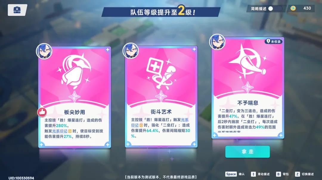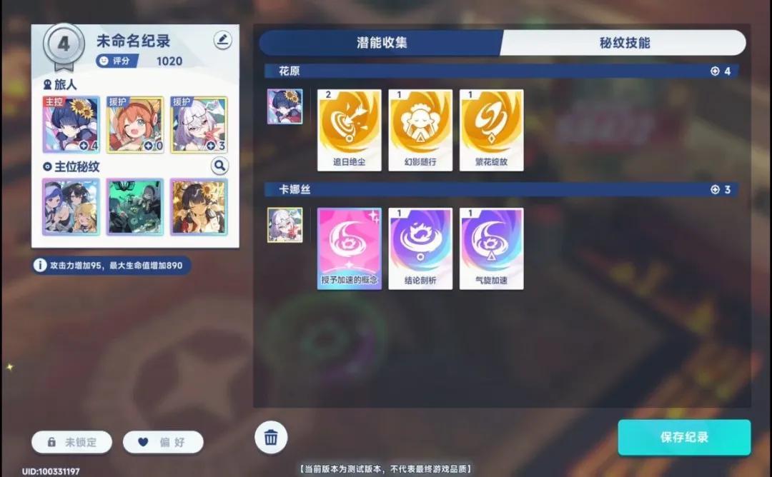 在進入遊戲最基礎的星塔探索模式前,玩家除了要配隊,還需要選擇祕紋。這些祕紋除了能提供直接的加成外,「主位」祕紋還能提供一系列技能,但其中的協奏技能不會直接解鎖,需要玩家在關卡內通關收集音符來激活和提升技能等級。