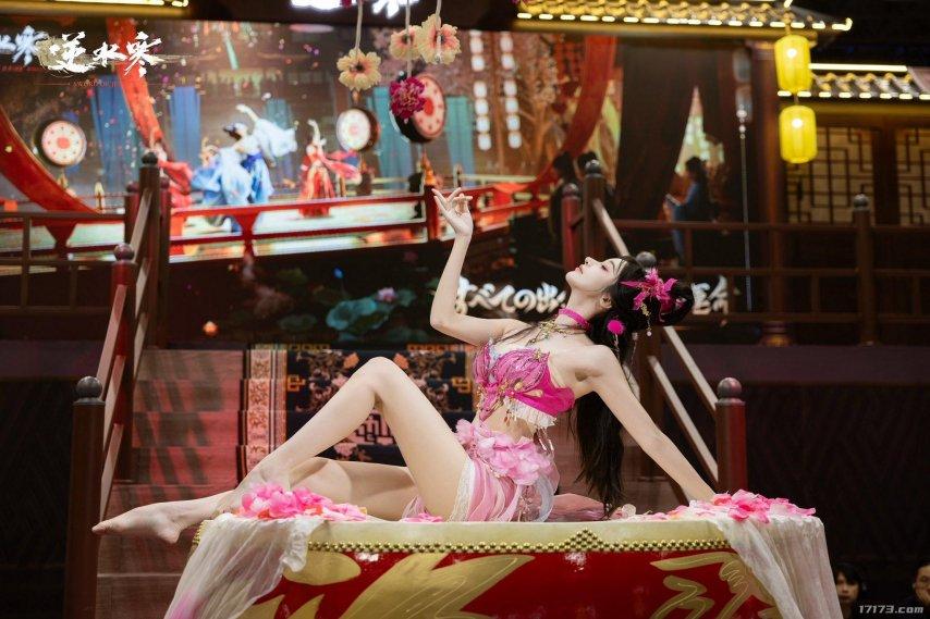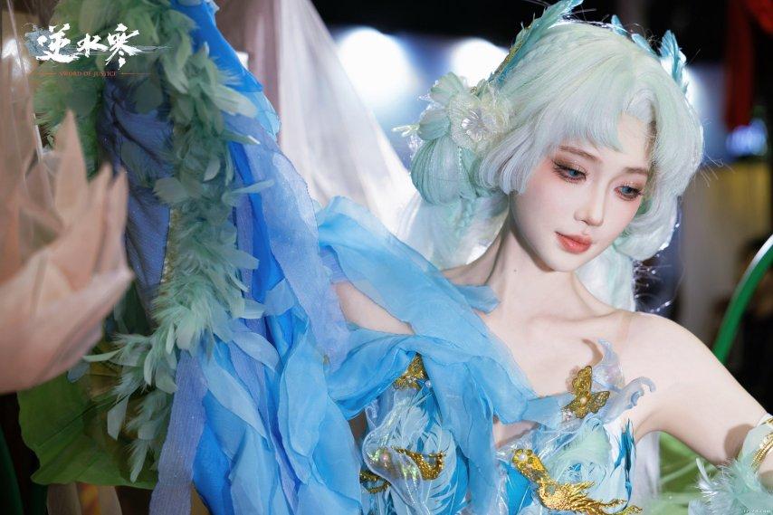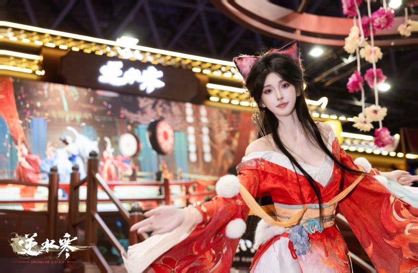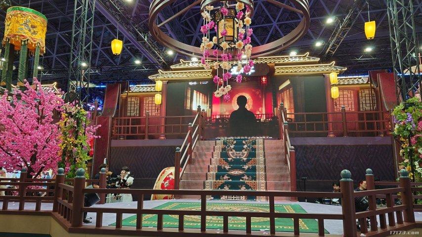 展臺前方的大型舞臺每天輪番上演根據遊戲劇情改編的歌舞表演,吸引觀衆層層圍觀。二十餘名專業Coser全天候角色互動與巡遊,不僅成爲現場焦點,更讓全球玩家親身感受到“古風神顏”的視覺衝擊。